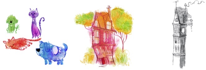 Everything starts in my sketchbook, whether it’s scribbled thumbnails or something more finished like this piece, which was inspired by the way Colorado has many more than four seasons, often in the same week. (Like around 20?) I think better on paper so most of my brainstorming happens with a pencil.